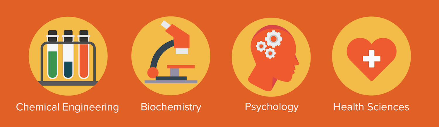 Chemistry enthusiasts can consider the following degrees: chemical engineering (with good grades in physics), health sciences (think medicine, pharmacy and nutrition, with good grades in Biology), biochemistry, forensic science and psychology.