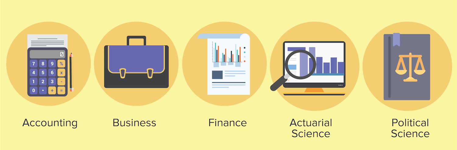 However, other areas of study that you can consider include: accounting, business, actuarial science, political science and finance.